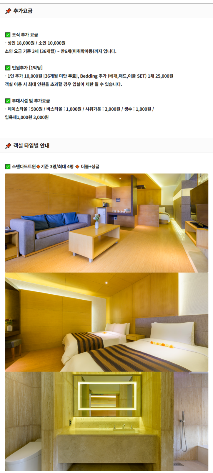 ㆍ침구 추가 : 1인 25,000원 (1박기준)