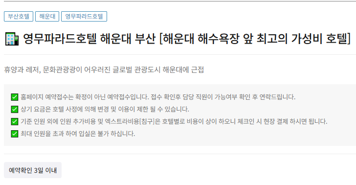 ㆍ얼리 체크인 및 레이트 체크아웃은 당일 현장에서 문의 부탁드리며, 별도 비용이 발생할 수 있습니다.